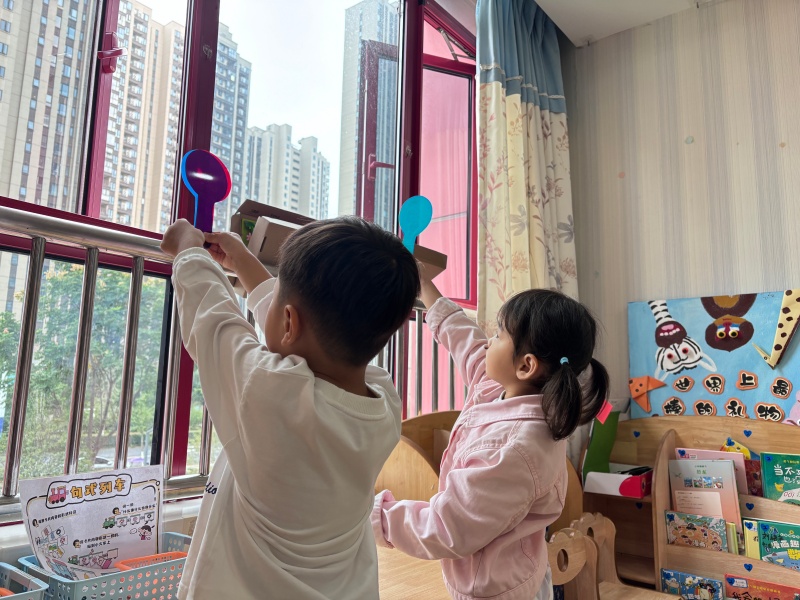 实验结束后,为了拓展探索维度,老师还带领孩子们拿着三原透光片,对着窗外的阳光观察,看看透过光线的彩色薄片会有什么新变化。此次活动不仅让孩子们轻松掌握了三原色叠加的科学知识,更激发了他们对科学探索的兴趣,培养了动手能力和观察力。