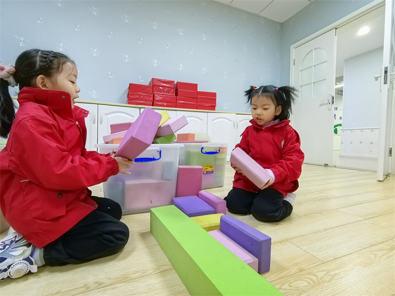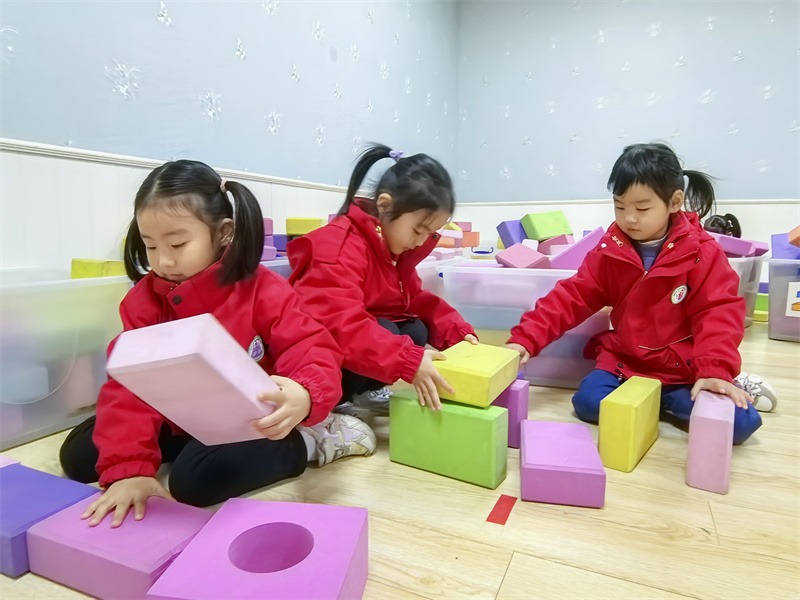 活动伊始,老师向孩子们展示了不同形状、颜色的泡沫积木,讲解了拼搭的基本技巧和安全注意事项。随后,孩子们分组合作,或独自构思,纷纷投入到拼搭创作中。有的孩子专注地搭建“高楼大厦”,层层叠加间展现着对结构的理解;有的孩子合作搭建“幼儿园城堡”,分工明确、互帮互助,共同完善作品;还有的孩子发挥奇思妙想,拼出“小汽车”“小花园”等充满创意的造型。活动过程中,孩子们时而讨论交流,时而动手调整,脸上洋溢着专注与快乐的笑容。老师则在一旁巡回指导,鼓励孩子们大胆尝试,及时给予肯定和帮助。