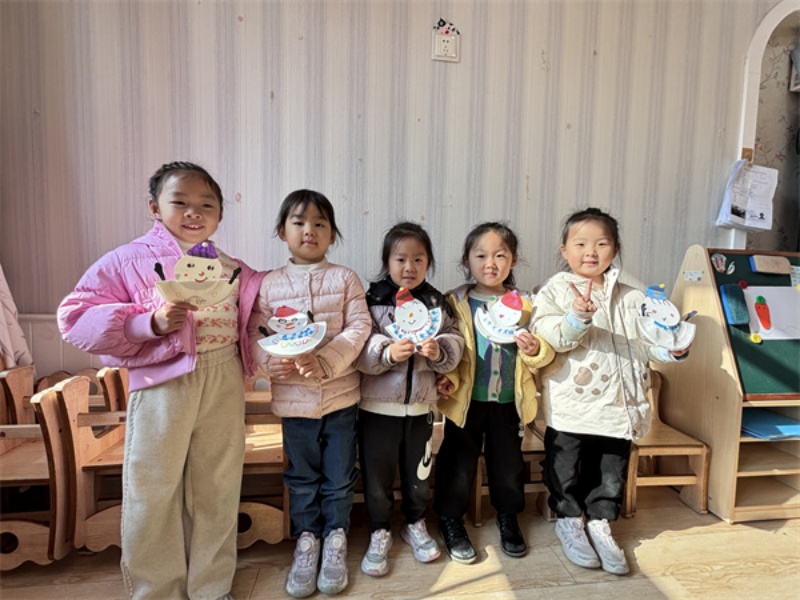 “我的雪娃娃戴了帽子!”“我的雪娃娃会微笑!”孩子们举着自己的作品,你一言我一语分享着创作的小欢喜。当大家捧着雪娃娃站在阳光下合影时,活动室里满是银铃般的笑声,每一个雪娃娃都成了孩子们冬日里的“小玩伴”。