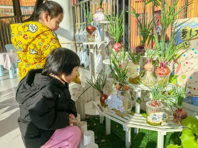 在持续的照料与观察中,孩子们直观见证了洋葱从萌芽到生长的全过程,不仅真切感受到植物生长的奇妙,更激发了探索自然的浓厚兴趣。此次活动以自然观察为载体,契合国家“重视幼儿科学启蒙与生命教育”的教育导向,在潜移默化中培养了孩子们爱护生命、勇于探索、主动担当的良好品质。