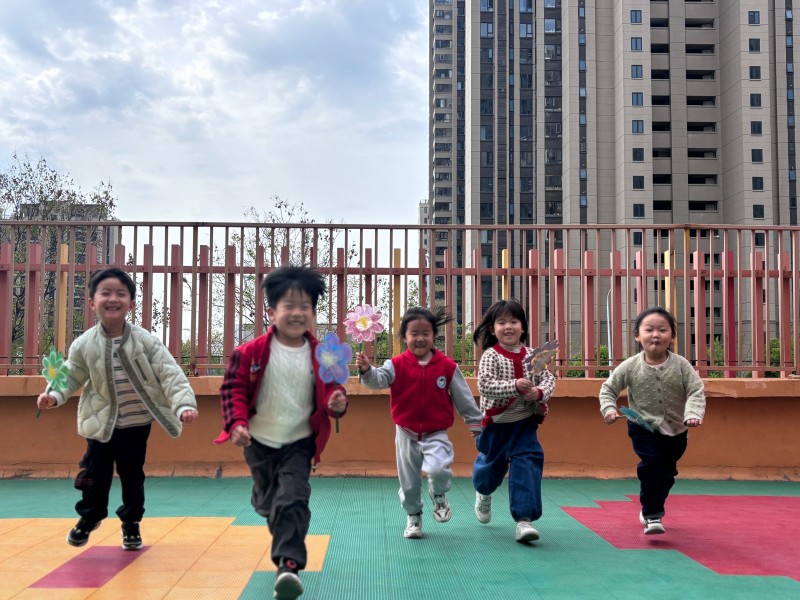 看着自己亲手制作的锡纸风车迎风转动,孩子们脸上洋溢着自豪与喜悦的笑容,他们拿着风车在操场上奔跑嬉戏,银闪闪的风车随风旋转,欢声笑语回荡在幼儿园的每个角落。