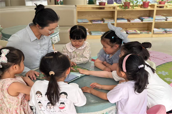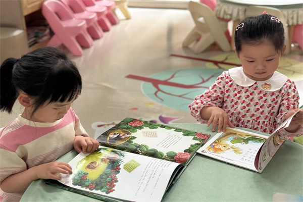 进入自由阅读环节,孩子们兴高采烈地自主选择感兴趣的绘本,有的坐在柔软的地垫上细细翻阅,有的则三两成群,小声交流着彼此的发现。他们全神贯注地注视着色彩丰富的画面,用稚嫩的声音模仿着书中角色的对话;有的孩子则尝试着用连贯的语言描述故事内容;更有的宝贝化身“小老师”,热情洋溢地与同伴分享自己的理解与感悟。教师穿梭在孩子们中间,适时引导孩子们观察画面细节、思考故事寓意,鼓励他们大胆表达自己的想法,将阅读与思考、表达紧密结合,让阅读成为一次心灵的旅行。
