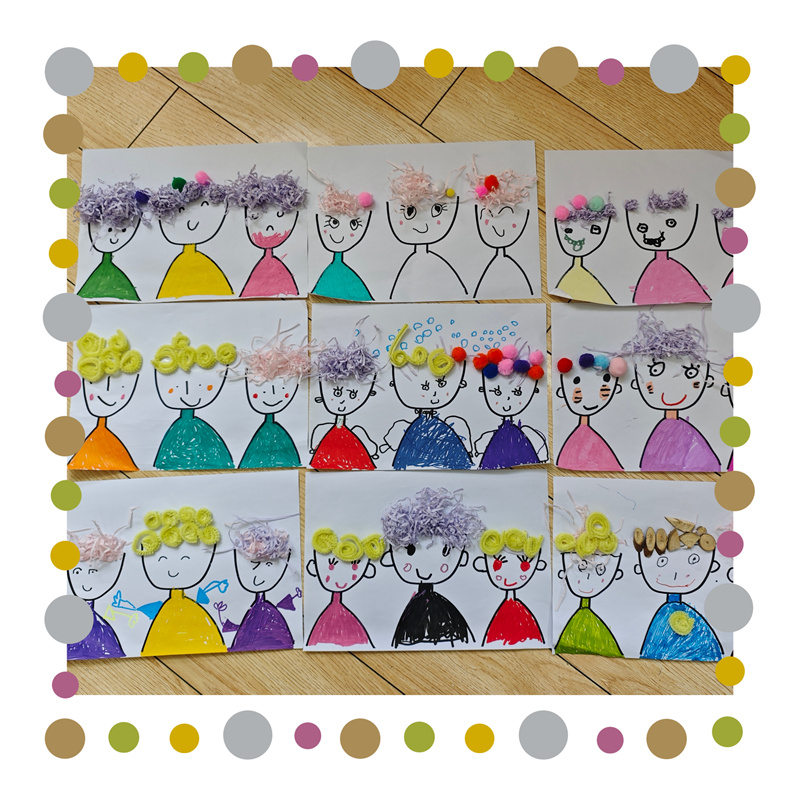 活动开始前,老师通过生动的故事和有趣的发型图片,引导孩子们观察不同发型的特点,激发他们的创作灵感。“你想设计什么样的发型呢?是长长的卷发,还是短短的直发?要不要加上漂亮的发卡或者彩色的丝带?”孩子们畅所欲言,创作的热情瞬间点燃。