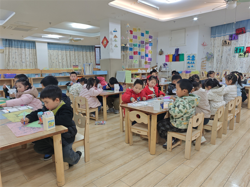 活动开始,老师通过图片、视频和趣味讲解,向孩子们介绍了风筝的造型、图案与色彩,激发了孩子们的创作兴趣。随后,孩子们化身小小艺术家,拿起画笔、彩纸等材料,认真地装饰、制作属于自己的风筝。大家大胆配色、创意构图,用稚嫩的小手勾勒出可爱的图案,一只只色彩鲜艳、充满童趣的风筝在孩子们手中慢慢成型,现场氛围温馨又欢乐。