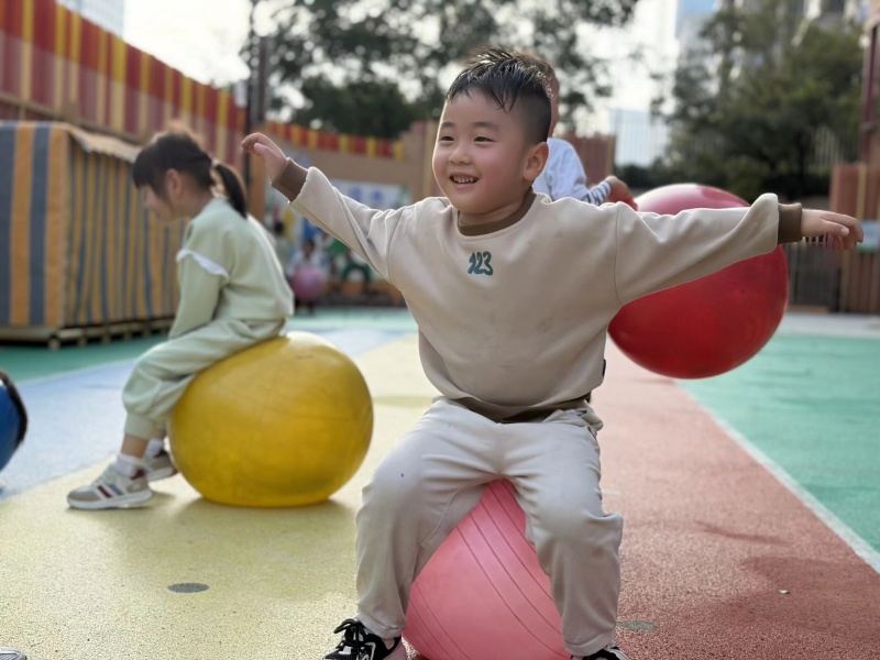 阳光正好,微风不燥。2025年10月17日,合肥市大西门幼儿园教育集团森林城分园的操场上热闹非凡,一场充满活力的羊角球游戏正在欢乐上演,中一班的孩子们用跳跃的身影勾勒出幼儿园里最灵动的风景线。