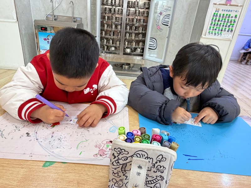 在植物角筹备阶段,老师充分尊重幼儿的主体地位,组织孩子们开展植物种植投票活动。经过热烈讨论与自主投票,辣椒凭借鲜明的外形、有趣的生长过程,成为中一班植物角的“主角”。确定种植品种后,孩子们化身小小设计师,拿起画笔亲手绘制植物标签,认真写下辣椒的名称、种植日期,用色彩装点属于自己的小植物,每一张标签都充满童真与创意。