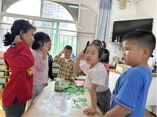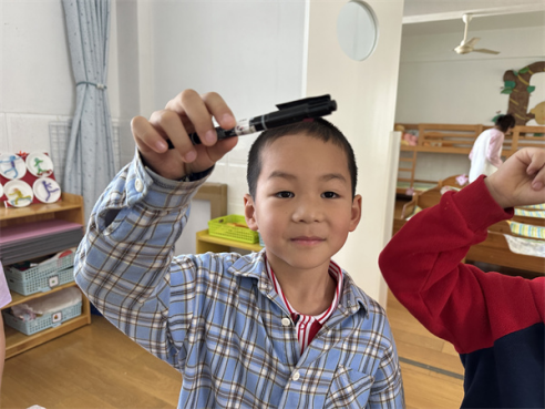 活动中,孩子在老师的引导下,积极参与,相互配合,用如吸管、画笔等常见的工具在头发、衣服上摩擦,感受静电产生的现象。整个过程孩子们保持了高涨的求知欲,体验科学小实验带来的快乐。