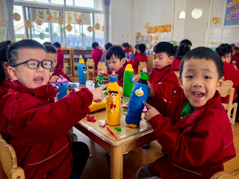 当平平无奇的塑料瓶遇上五彩斑斓的彩泥,当天马行空的想象遇上孩子们灵巧的双手,一场充满奇思妙想的艺术创想之旅在大二班的教室里热烈展开,让孩子们在变废为宝的过程中,尽情感受美、探索美、创造美。