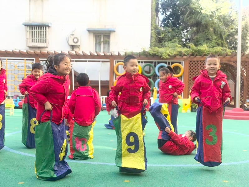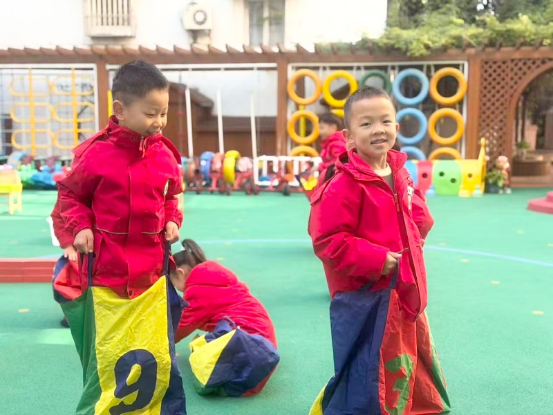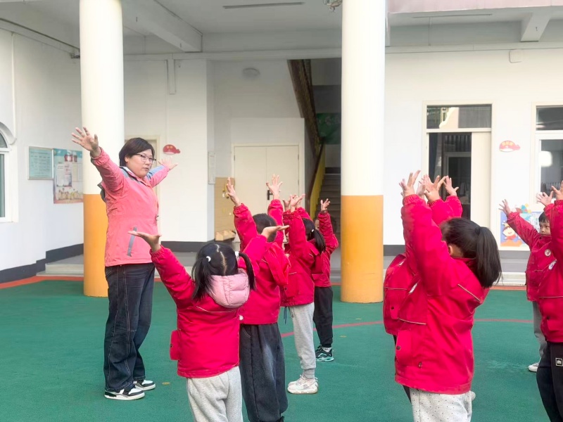 11月19日上午,孩子们化身“小悟空”,在老师的带领下开启趣味挑战:热身环节模仿“猴儿身轻如燕”的动作,迅速激活身体;探索环节自主挑选不同尺寸的“悟空专属布袋”,尝试单脚跳、合作跳等玩法,操场上满是“师父快看我”的雀跃声。