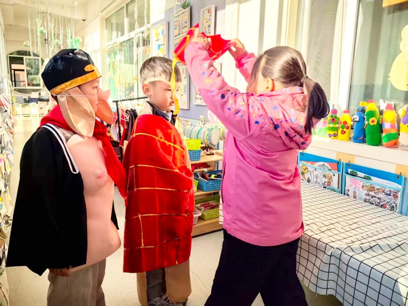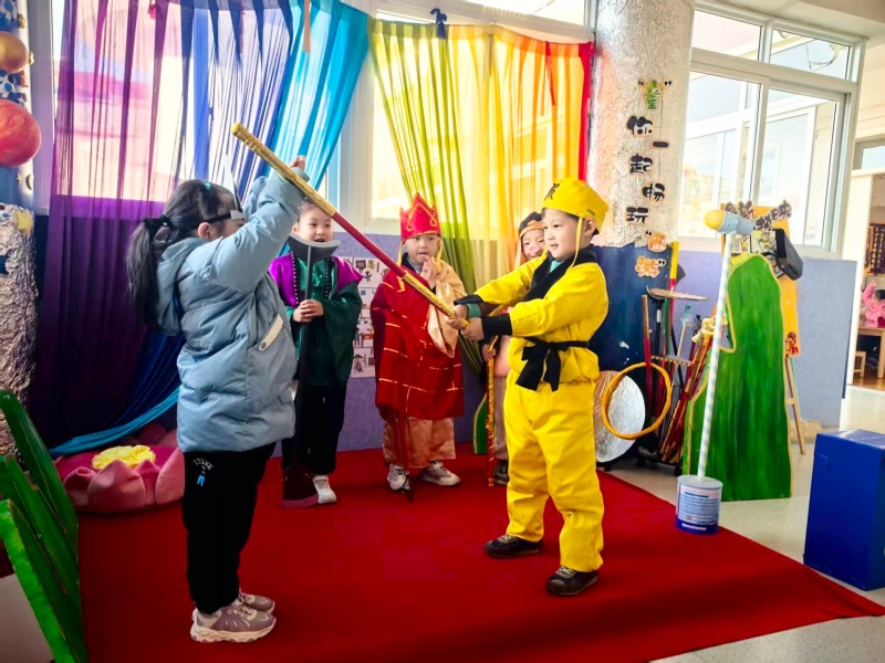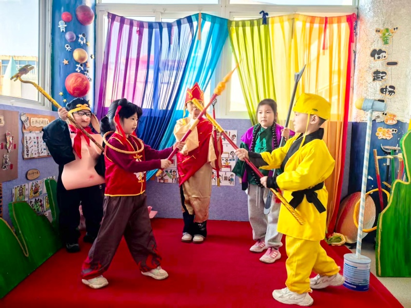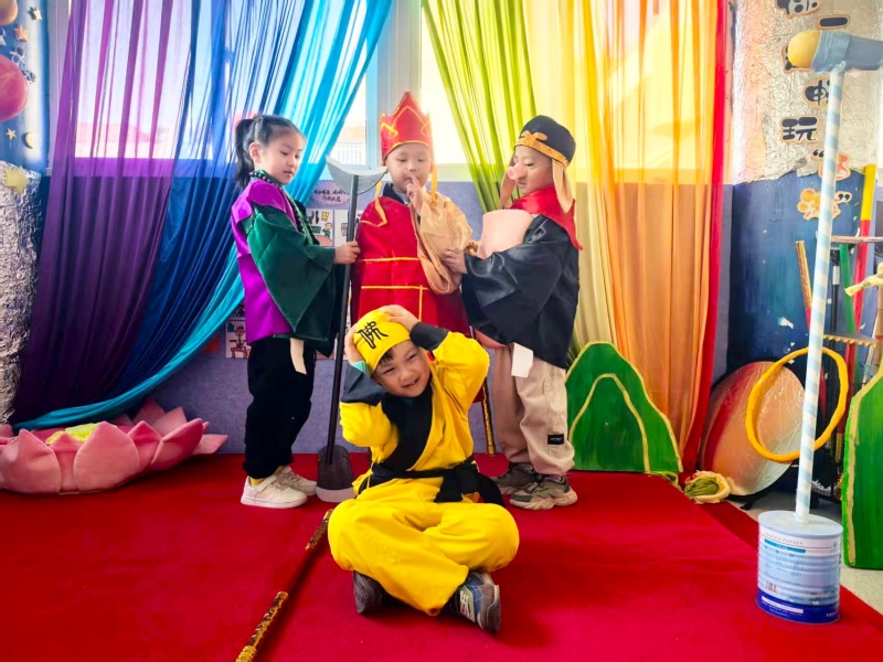 从角色分配到道具制作,再到剧情演绎,孩子们全程自主参与,在合作中体会团队协作的乐趣,也在沉浸式体验中加深了对《西游记》经典故事的理解。老师们表示,此次活动将传统文学与幼儿游戏、手工相结合,不仅激发了孩子们对传统文化的兴趣,更锻炼了他们的动手能力和表达能力。