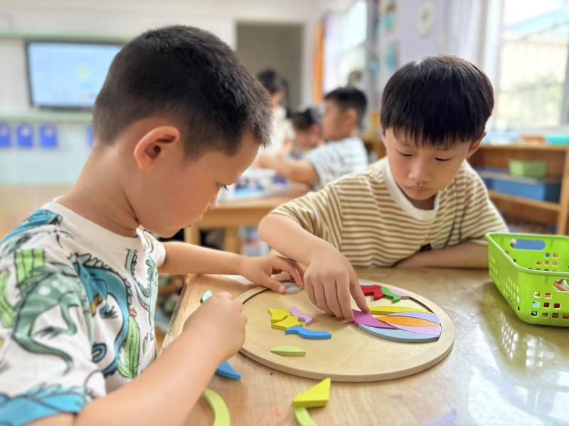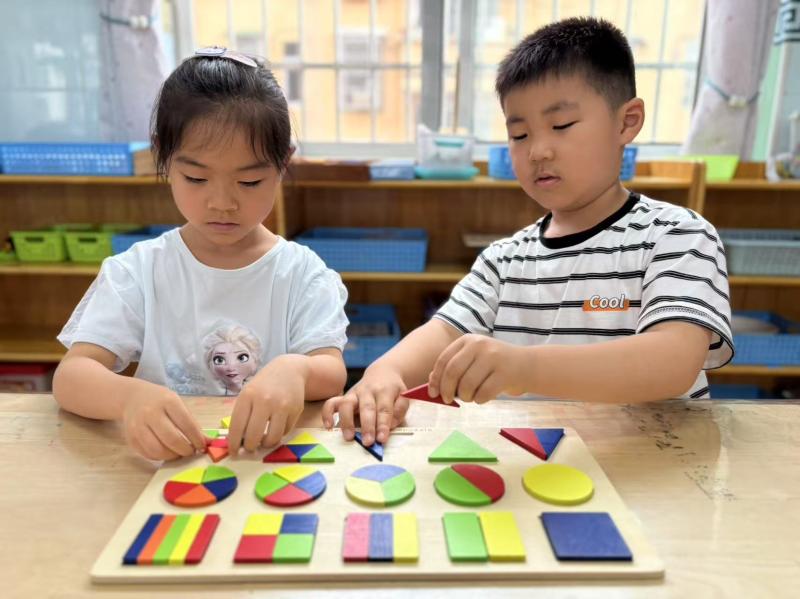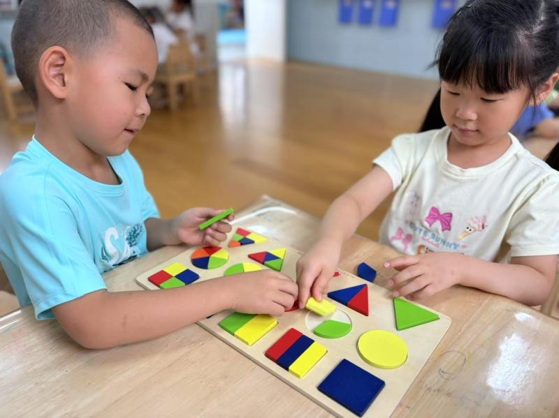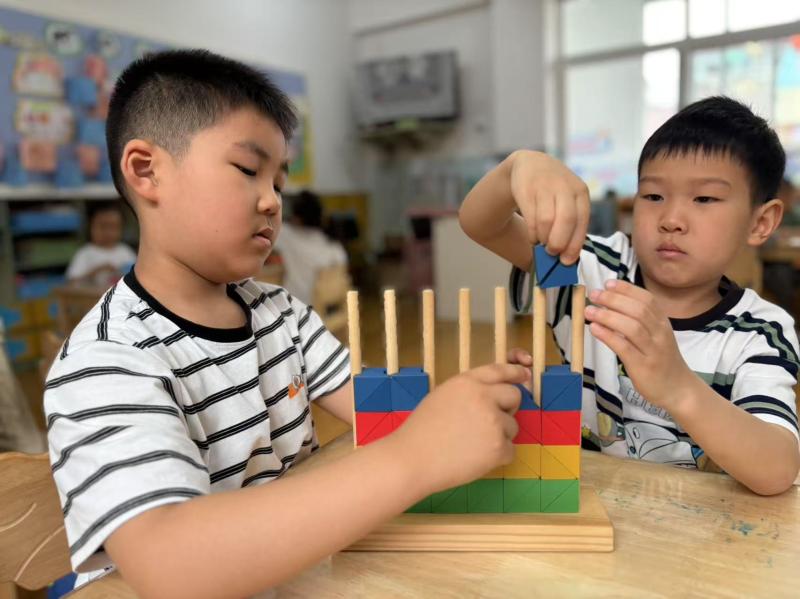 在建构游戏中,幼儿寻找、触摸各种形状的玩具,用丰富的语言描述它们的特征。通过观察和比较,孩子们认识了不同的图形,发展了空间想象能力。“窗户是长方形的!门也是长方形的!”孩子们将图形与生活中的物体联系起来,学会用数学的眼光观察世界。