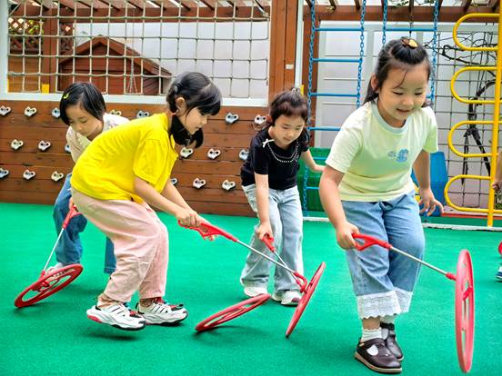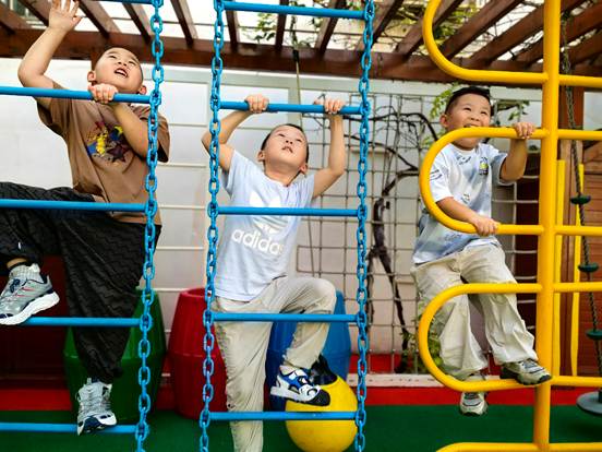 操场上,传统游戏与趣味运动相映成趣。跳绳、滚铁环锻炼协调与专注;攀爬架上的“小勇士”学习评估风险、克服恐惧;“转转球”和组合器械则促进平衡、协作与创造力。孩子们在挑战中强健体魄,在合作中学习沟通,收获成长的自信与快乐。