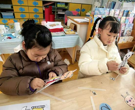 最富挑战与趣味的环节,莫过于用两脚钉和有孔塑料棍将部件连接组装。如何让小猪的胳膊能动起来?如何让大灰狼的尾巴可以摇摆?孩子们两两合作,探索关节固定的位置,尝试连接杆的长度。