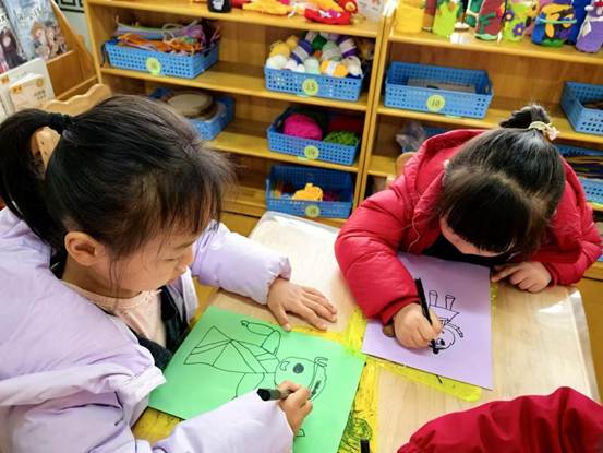 孩子们重温了《三只小猪》的故事情节,对憨厚勤劳的小猪、狡猾的大灰狼有了更生动的理解。他们拿起画笔,在纸上认真勾勒:圆滚滚的小猪身体、尖尖的狼耳朵、稻草屋的纹理、砖块的线条……每一个形状都蕴含着孩子们对角色的独特想象。