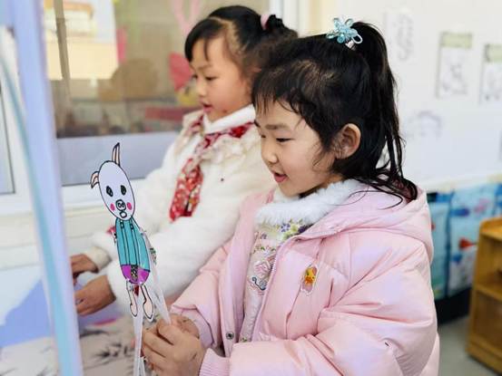 当自制皮影遇上灯光与幕布,教室瞬间变成了梦幻剧场。孩子们分组手持皮影,尝试演绎熟悉的剧情。幕后,是协同配合:你操纵小猪,我操控大灰狼;幕前,是声情并茂的对话与生动的剧情推进。光影交错间,故事被重新赋予生命,创造力、语言表达与团队协作能力在游戏中自然融合。