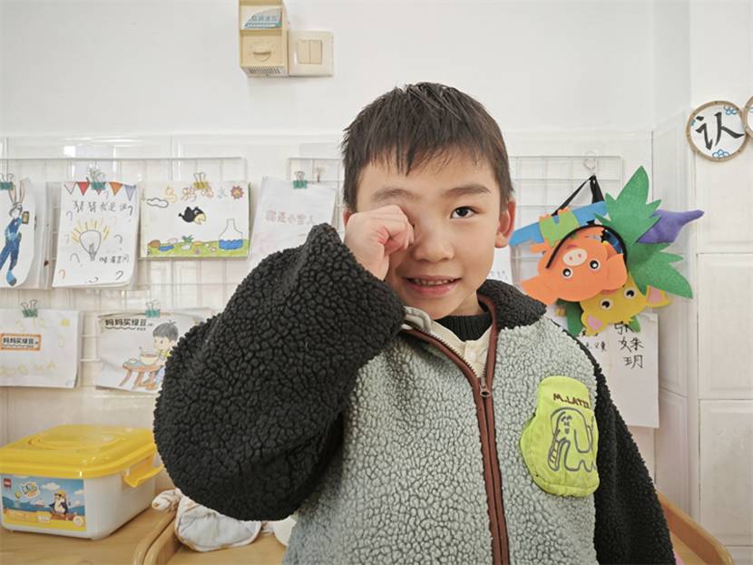 接着,《闹闹近视了》的小故事,让孩子们直观了解到不良用眼习惯会损伤视力,也明白眼镜只能缓解近视,不能根治,护眼要从日常小事做起。老师结合生活场景,引导大家辨析对错用眼行为,先展示了错误示范,侧趴桌子看书会压迫眼睛,用脏手揉眼睛容易带入细菌引发不适,孩子们纷纷举手说出其中危害。