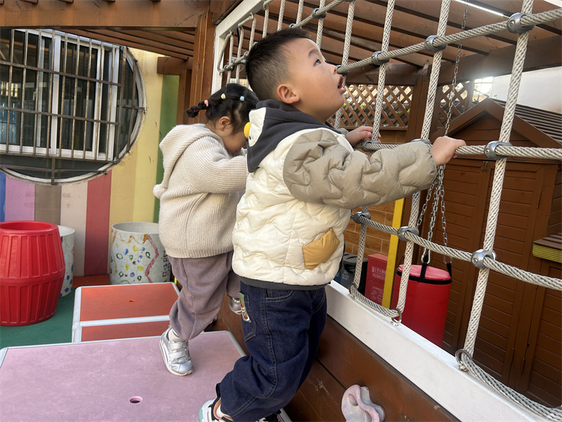 阳光明媚的操场上,托班宝贝们的运动时光热闹又欢乐。看!他们有的在骑小车、有的在攀爬,通过趣味运动,宝贝们不仅锻炼了平衡能力、协调能力,还能渐渐养成了热爱运动、坚持运动的好习惯,以强健的体魄抵御疾病侵袭。