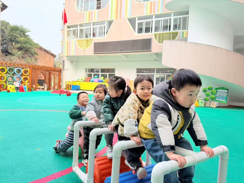 阳光里,孩子们的笑声清脆响亮,既锻炼了平衡与协调能力,也在互动中学会了分享与互助,尽情享受着运动的快乐。