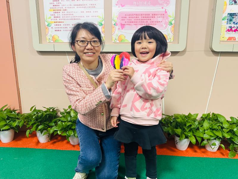 活动伊始,老师通过生动的绘本故事《爱的抱抱》导入主题,引导幼儿回忆与爸爸妈妈、爷爷奶奶相处的温馨瞬间 —— 睡前的晚安吻、放学时的拥抱、生病时的悉心照料,让孩子们在分享中感知爱的意义。“谁是你最爱的人呀?”“你想怎样表达对他们的爱呢?” 老师温柔的提问引发了孩子们的热烈回应,一双双亮晶晶的小眼睛里满是期待,纷纷举手分享自己心中的 “挚爱”。随后,老师示范了爱心的简单画法,鼓励孩子们大胆发挥想象,用自己喜欢的颜色装饰爱心,让每一颗爱心都充满个性与温度。