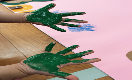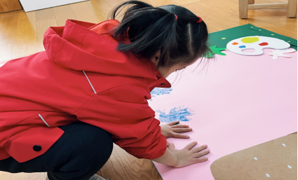 活动现场,老师们精心布置,准备了各种色彩鲜艳的颜料、柔软的绘画纸以及清洁用品,确保孩子们能够尽情发挥而无后顾之忧。孩子们带着好奇与兴奋的神情,围坐在小桌旁,眼神中充满了对即将开始的活动的期待。