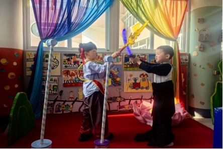 假期里,孩子们观看了《哪吒2》的电影,对里面的故事产生了浓厚的兴趣,《哪吒2》是中国经典神话故事。哪吒的正义勇敢、善良有爱等宝贵品质感染着孩子稚嫩的内心。在幼儿园里,孩子们常常模仿哪吒的动作,谈论着乾坤圈、混天绫和风火轮等法宝,还对哪吒闹海的故事细节津津乐道。合肥市大西门幼儿园总园中二班孩子们表演兴趣越来越浓厚。角色游戏中,表演区的孩子们忙着换装、拿道具,做道具、商量与同伴扮演的角色和故事情节。哪吒、敖丙、太乙真人……场面十分热闹。