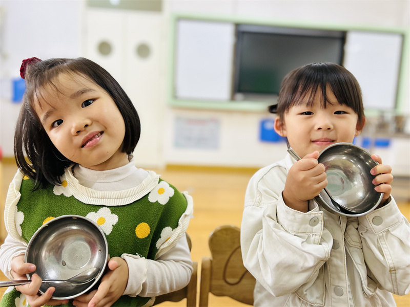 为了将节约理念融入幼儿每日生活,班级内大力推行“光盘行动”。孩子们大口大口地吃着碗里香喷喷的饭菜,看着照片中自己的碗变得干干净净,骄傲地举起小碗展示“光盘”的那一刻,每个孩子都为自己成为最棒的“节粮小达人”感到骄傲!