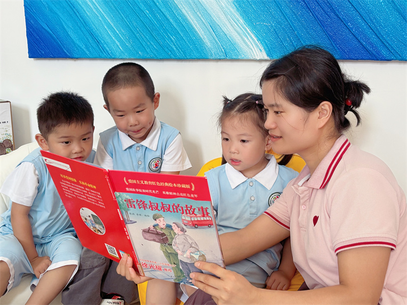 孩子们围坐在老师身边,静静聆听《雷锋叔叔的故事》《小萝卜头》等红色经典。故事里那些勇敢、善良、坚强的人物深深吸引着每一颗童心。孩子们在听完后纷纷说出心里话:“我长大了也要帮助别人!”“小萝卜头真勇敢!”