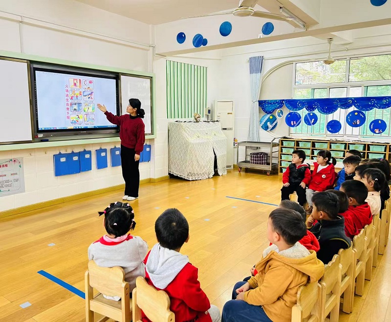 活动伊始,老师借助色彩鲜明的图片、生动有趣的动画,向孩子们介绍了常见的消防安全标志。“这个红色的圆圈加斜线是‘禁止烟火’标志,看到它就不能玩火哦!”“绿色的小房子是‘安全出口’标志,着火时要朝着这个方向跑!”老师耐心讲解着每个标志的含义和用途,孩子们听得格外认真,还积极举手抢答老师提出的问题,快速记住了不同标志的识别方法。