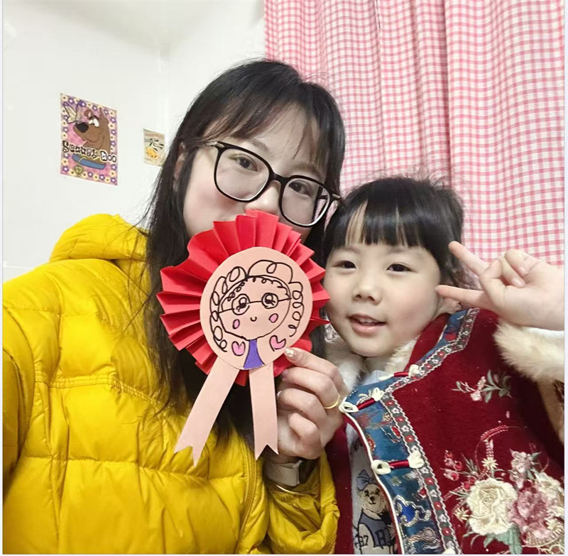 最令人期待的手工制作环节如期而至——制作“爱的勋章”。教师备好彩纸、亮片、胶水、丝带等材料,详细讲解并示范制作步骤。孩子们认真聆听,随后迫不及待投入创作。小心翼翼挑选彩纸、认真折叠,用心绘画妈妈、奶奶等身边的女性,有的点缀小花,有的勾勒爱心,每一个动作都饱含诚意,每一处细节都承载着爱意。制作中,孩子们互相帮助、彼此欣赏,遇到困难主动请教老师,教室里满是欢声笑语。很快,一枚枚色彩鲜艳、造型可爱的勋章完成,孩子们捧着亲手制作的礼物,脸上洋溢着自豪与幸福,纷纷念叨着要送给长辈、送上祝福。
