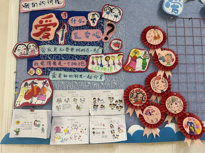 活动伊始,教师以“宝贝们,爱是什么呢?”的提问拉开序幕。孩子们踊跃举手,用稚嫩的话语诉说对“爱”的理解:“爱是妈妈给我讲故事”“爱是奶奶给我做好吃的”“爱是外婆抱我亲我”,简单真挚的表达里满是对长辈的依赖与喜爱。为让孩子们更深刻地感受爱、表达爱,活动前期,教师提前为每位幼儿发放“爱的调查表”,邀请家长陪同共同完成。孩子们在家长的陪伴下,认真询问、仔细记录,围绕“爱是什么?”“爱的表达方式?”等问题,慢慢读懂爱的含义。
