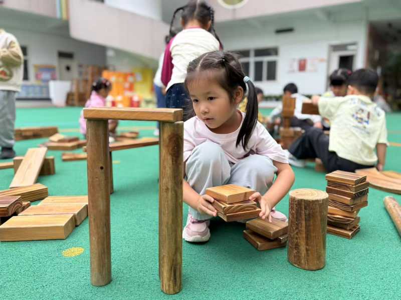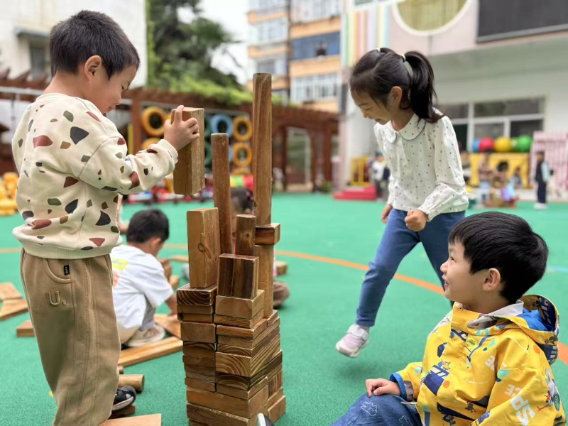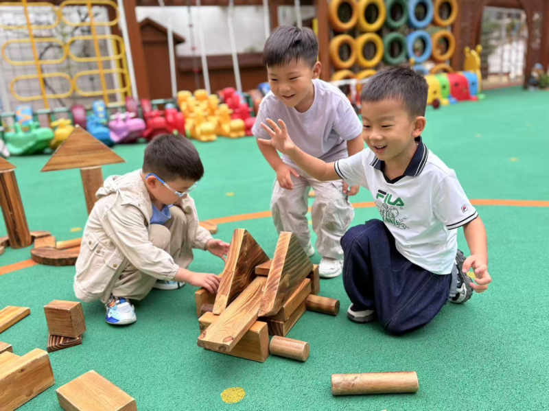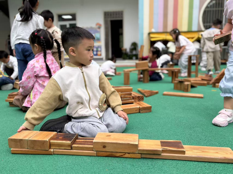 在整个过程中,我们听到了最多的词语是:“我们来帮忙!”“这里需要一块长的!”“小心,要稳住!”合作、分享、解决问题的精神,在一次次尝试与成功中闪闪发光。这场户外建构游戏,远不止是“玩”那么简单。它是一场融合了数学(形状、对称、平衡)、科学(结构、稳定性)、艺术(设计与审美)与社会性发展的综合性学习。