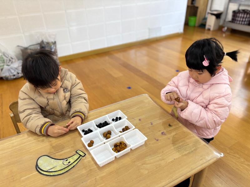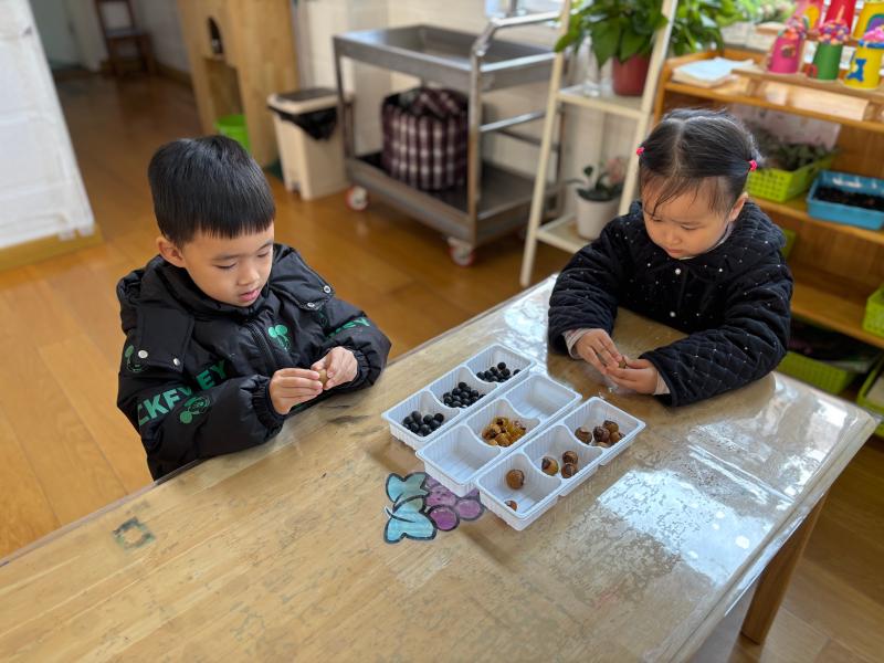 在开始制作前,每个孩子都获得了几颗完整的无患子果实,迎来了与自然材料的第一次亲密接触。“老师,它摸起来滑滑的!”“里面有黑色的种子!”在老师的引导下,孩子们用小手仔细地剥开棕色的果皮。这个过程不仅锻炼了他们手指的精细动作,更让他们通过触觉、视觉和嗅觉,全方位地认识了这种神奇的自然馈赠。