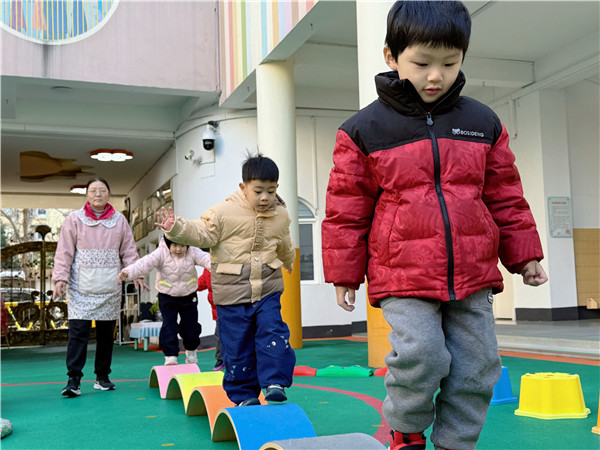 “我们都是小雪人,太阳出来慢慢融化啦……”在充满故事性的指令中,孩子们开始了热身之旅。他们模仿着小动物,扭扭腰、跺跺脚,让身体像小火炉一样慢慢暖和起来。老师们巧妙地将走、跑、跳、钻、爬等基本动作融入游戏,让孩子们在欢声笑语中锻炼体能,提升动作协调性,感受团队合作的快乐。