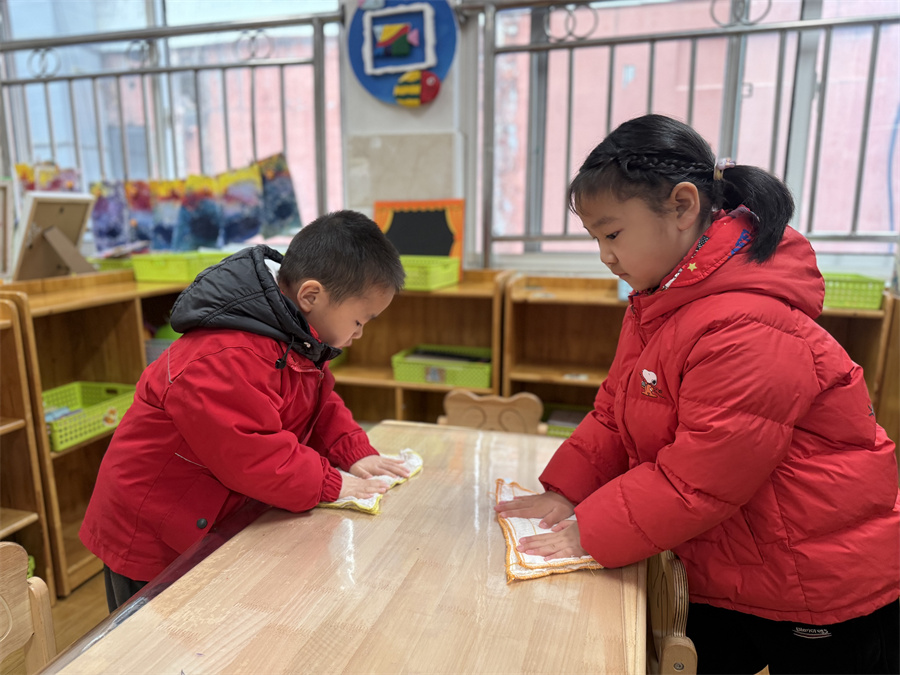 “别看孩子们年纪小,做起事来有板有眼,比平时更认真!”班级老师欣慰地说。通过这次比拼,老师们欣喜地看到,孩子们不仅掌握了基本的劳动技能,更在轮流担当“值日生”的过程中,懂得了为集体服务的意义,萌发出初步的责任感。生活即教育。此次技能比拼不仅是对孩子们日常值日工作的一次检验,更是他们成长路上的一次自信展示。今后,班级将继续以值日生活动为载体,把劳动教育融入一日生活的点滴中,让小小的值日生岗位,成为孩子们体验成长、收获自信的精彩舞台。