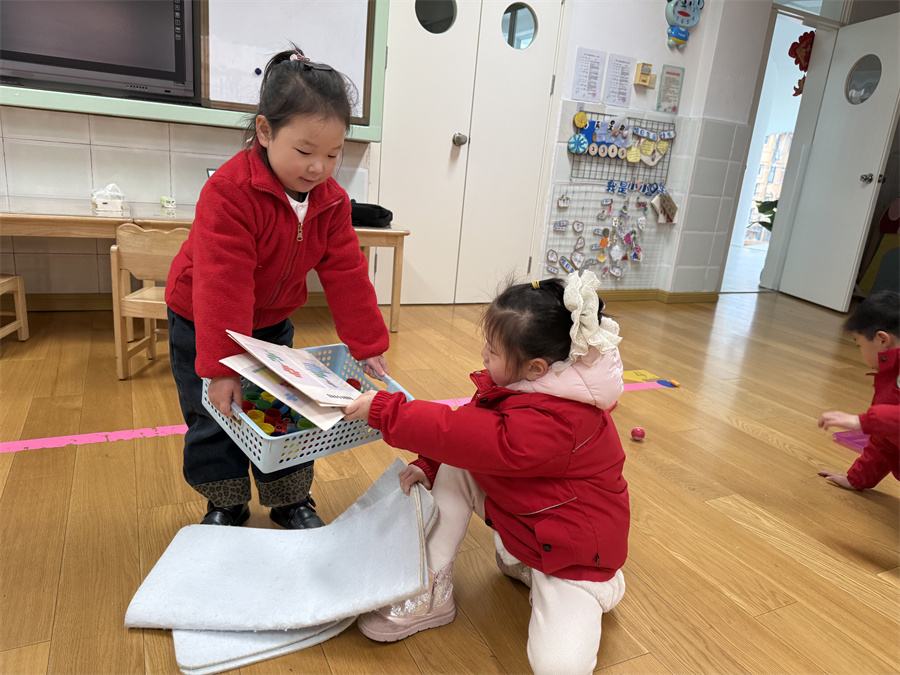 活动紧贴幼儿日常生活,设置了“整理小能手”“清洁小卫士”两个比赛项目。随着老师一声令下,小选手们迅速进入状态:在整理区,他们熟练地将散落的玩具按标志排列整齐,将彩笔一一归位;在清洁区,孩子们拿起小抹布,有模有样地擦拭桌椅,不放过任何一个边角。虽然过程中偶尔有手忙脚乱的小插曲,但每个孩子都专注投入,认真完成每一个步骤。